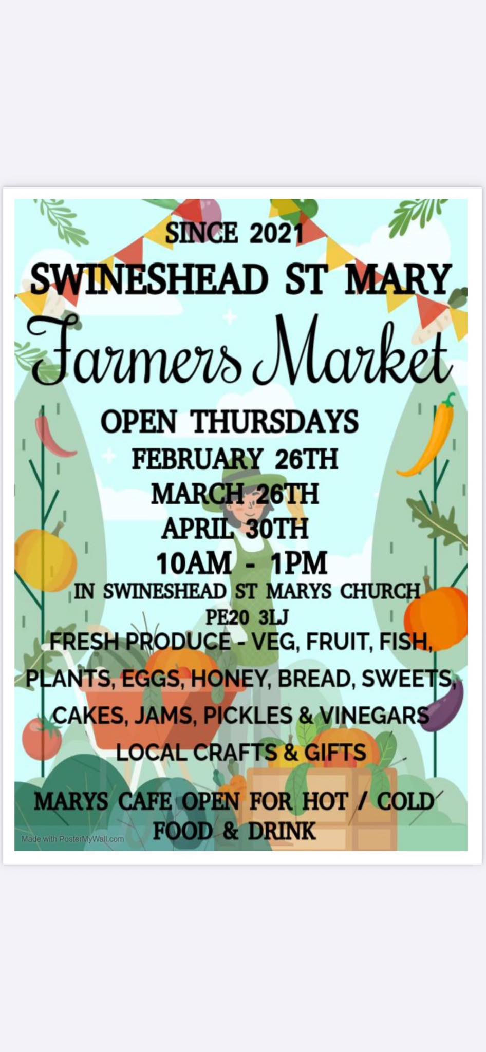 Go along purchase local food & crafts. Enjoy a cuppa & bacon bap with your friends & family. Plus The Tastiest Catch van - super fresh Grimsby Fish - stands 11.30-12.30 outside the Church Hall next to the Church.