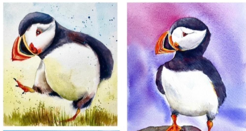 Paint Puffins in Watercolour