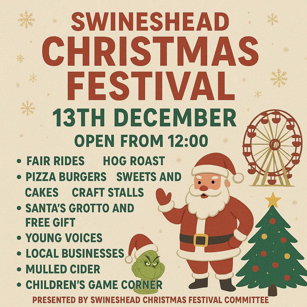 Lots to see and do including fair rides, hogg roast, a variety of stalls, Santa's Grotto, 'Young Voices' and mucj more!When: Saturday 13th December 12:00pm - 9:00pm