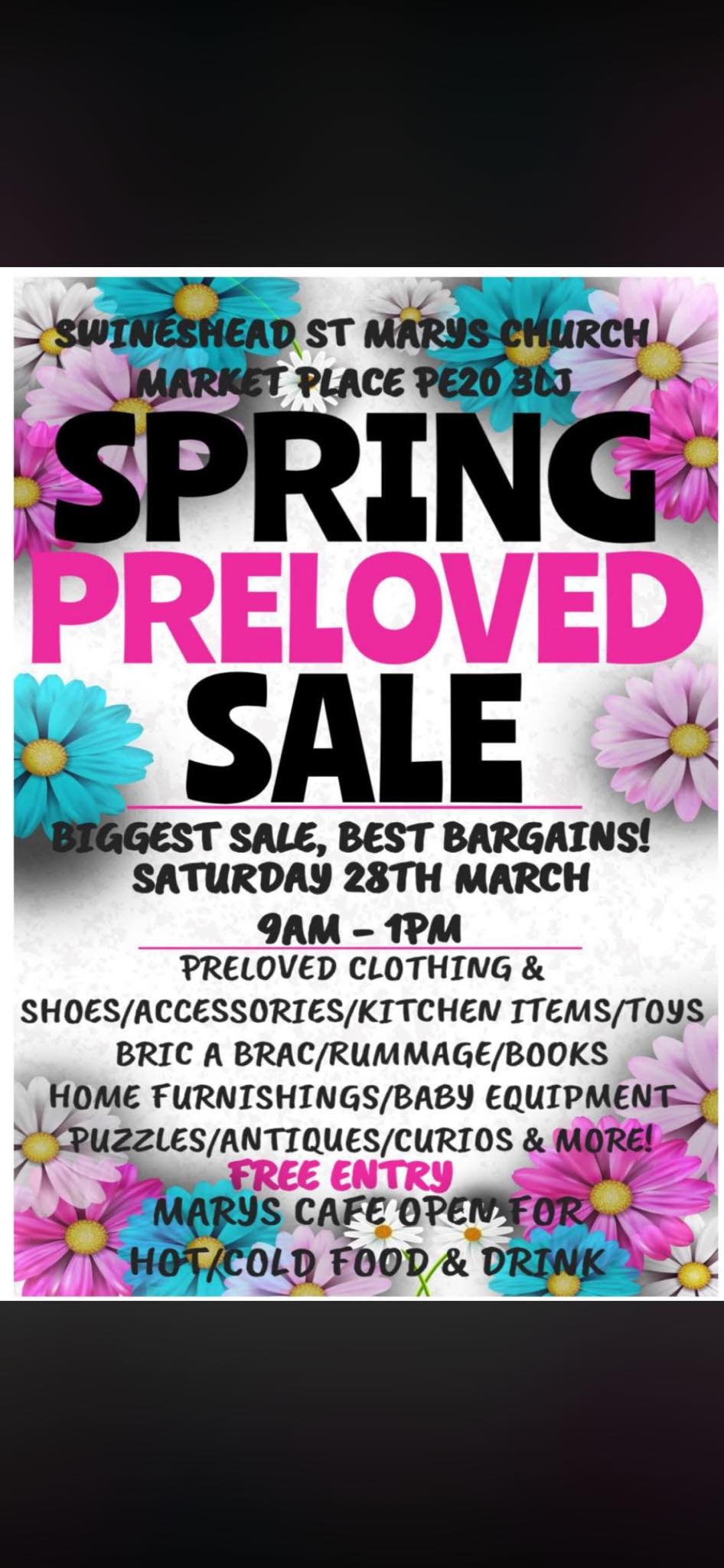 There will be a selection of Clothes, bric a brac, toys, jewellery, shoes, books and more. St Mary's Cafe will be open too!When: Saturday 28th March 9:00am - 1:00pm