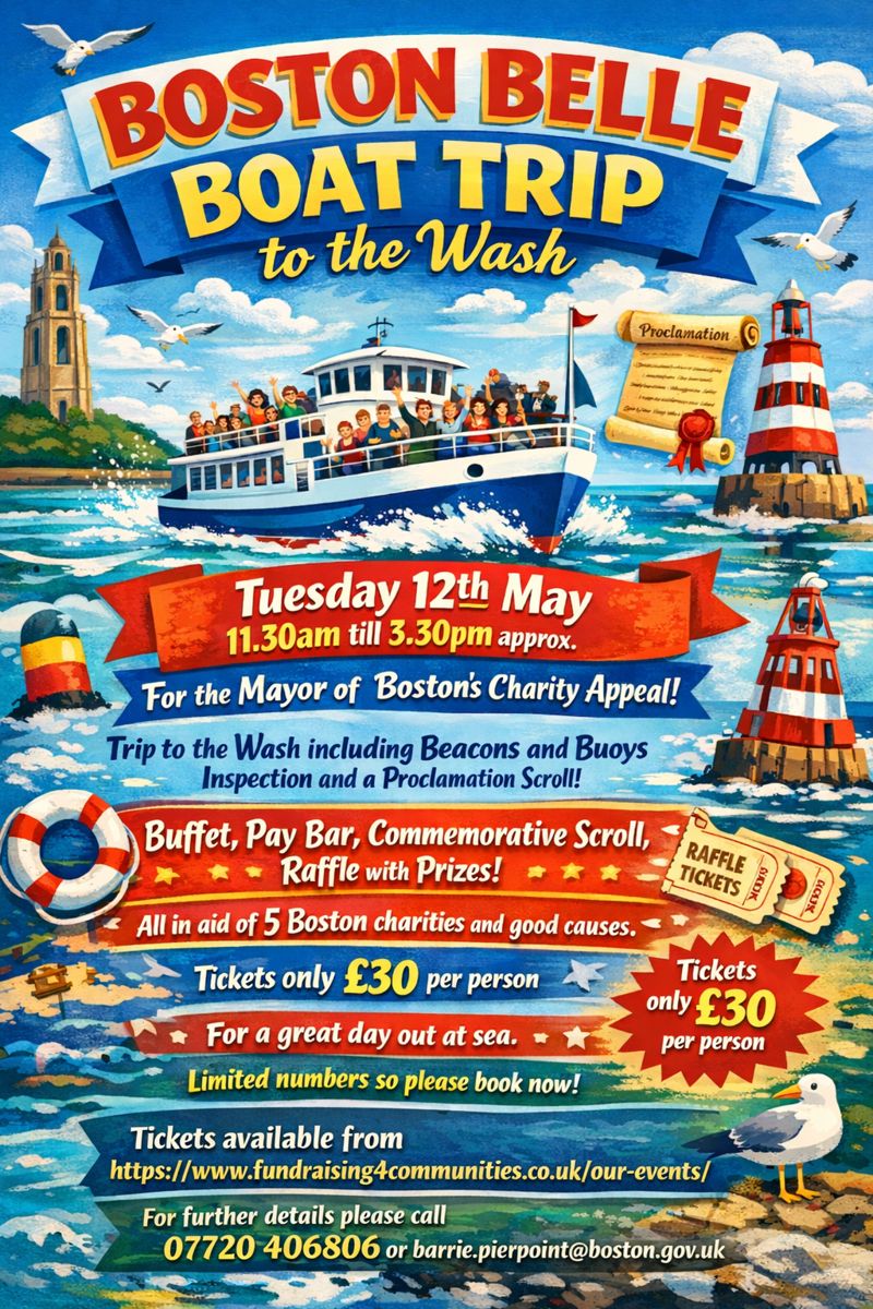 Tickets at fundraising4communities.co.uk/our-events or email barrie.pierpoint@boston.gov.uk